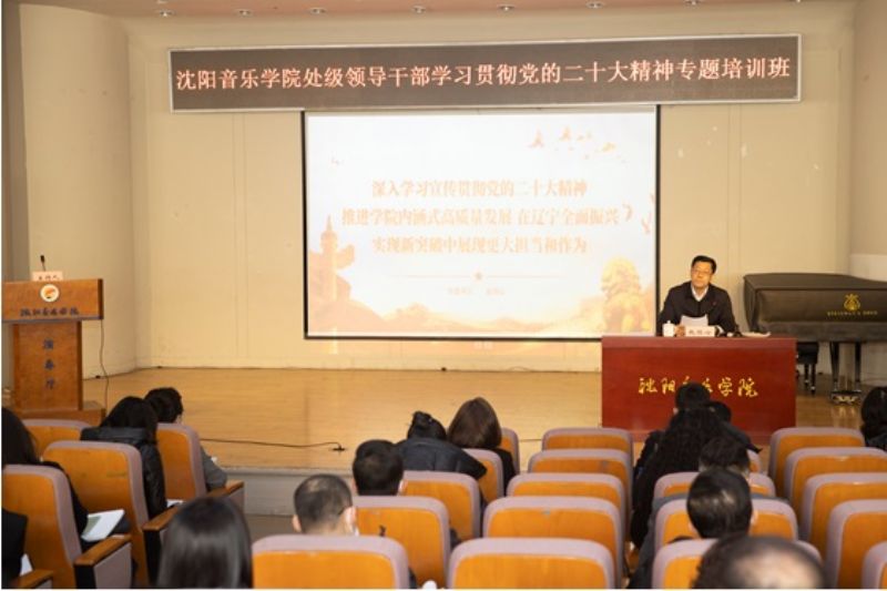 开班式后,赵恒心从“深刻理解和准确把握‘国之大者’”“全面了解掌握‘省之要务’”“认真思考谋划我院三年行动方案”三个方面,为全体处级领导干部作了专题辅导,带头宣讲党的二十大精神。首先,他从“党的二十大的重大意义和鲜明主题、新时代10年的伟大变革、马克思主义中国化时代化新境界、中国式现代化建设、科教兴国与人才强国战略、文化自立自强、党的建设和全面从严管党治党”七个方面,对党的二十大精神作了全面宣讲和深入阐释。其次,他对省委十三届五次全会审议通过的《辽宁全面振兴新突破三年行动方案(2023-2025年)》所确定的总体要求、重点任务和保障措施,特别是郝鹏书记在参加省委十三届五次全会高校代表团讨论时对我省高等教育事业发展提出的六点希望,进行了系统解读。最后,他结合我院实际,总结梳理了“大力推进内涵建设,在‘双一流’建设中取得新成效;实施‘人才强校’战略,在锻造过硬队伍上实现新突破;做好文化传承,在服务社会上展现新作为;加强科技创新,在校园建设上树立新形象;盘活存量资源,在解决历史遗留问题上开创新局面”五项重点任务,并进一步提出五项保障措施,为科学谋划、深入实施我院三年行动方案理清了思路,明确了方向,找准了定位,指出了方法,提供了遵循。