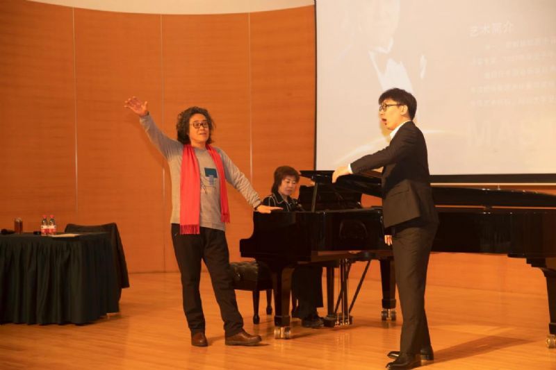 大师课上,宋一教授先后对5位本科生和5位研究生演唱的意大利语作品进行了一对一指导,从发声方法、语言发音、气息运用、情感表达、舞台张力等多个方面进行了细致示范,并强调了意大利语作品的演唱风格及语言重要性,同时针对不同学生的问题进行了详细指导并提出相应解决方案。宋一教授以多年的教学和演唱经验为声乐歌剧系师生带来了全新的声乐演唱理念,令师生们获益匪浅。他深厚的艺术功底、严谨的治学态度、细致的演唱示范、幽默的授课风格,给现场师生留下了深刻印象。
