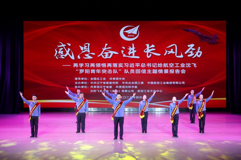 报告会以动人的演绎结合多元的表现形式,生动再现了“罗阳青年突击队”深入贯彻落实习近平总书记重要指示批示精神,在急难险重任务中拼搏奋进、奉献青春,在全面推进航空科技自立自强、航空工业高质量发展、建设航空强国的恢弘实践中勇挑重担、冲锋在前的感人故事,也展现出新时代十年我国航空工业跨越式发展的历程和成就。报告会分为六个篇章,《回信了,总书记回信了!》讲述了习近平总书记重要回信在航空工业“罗阳青年突击队”和航空工业全线引起的热烈反响;《让青春在建设航空强国的火热实践中绽放光芒》讲述了罗阳青年突击队十年来奋战一线的故事;《谁的罗阳》,由罗阳的女儿罗靓讲述女儿眼中,既是父亲,也是航空工业英模的罗阳平凡而伟大的印象与回忆;《这十年》讲述了突击队队员参与项目研发生产的故事,展现了舰载机十年、航空工业十年发展成就;《幸福都是奋斗来的!》展现了航空青年成长成才、报国强国的故事和成绩,也展现了青春航空、青春中国、青春伟业的赓续传承;《请党和人民放心》讲述了航空人面向未来、接续奋斗的故事,表达了强军有我、强国有我、复兴有我的信心和决心。