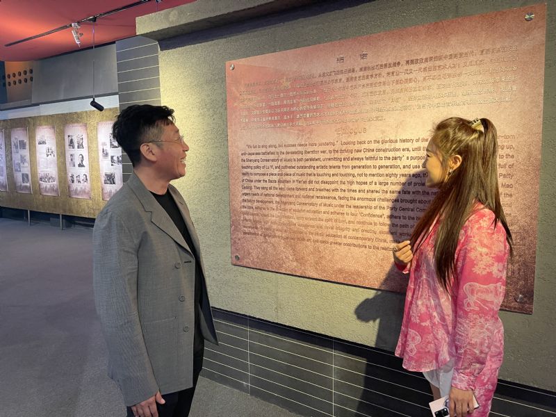 在校史馆,王小玮详细了解了我院的发展历程和各个时期所取得的办学成就,特别是近年来我院在学科建设、人才培养、艺术实践等方面所取得的突出成绩。交谈中,王小玮介绍了玖月音乐科技(北京)有限公司的发展现状与未来规划以及多年来吸纳我院毕业生就业等方面情况。