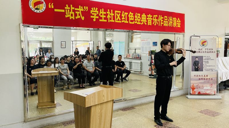 为进一步拓宽“一站式”学生社区思政育人途径,不断健全和完善“三全育人”大思政格局,6月8日,学生处联合管弦系在三好校区“一站式”学生服务中心,共同举办第四期红色经典音乐作品讲演会。学生处、管弦系相关负责同志与学生代表50余人参加活动。