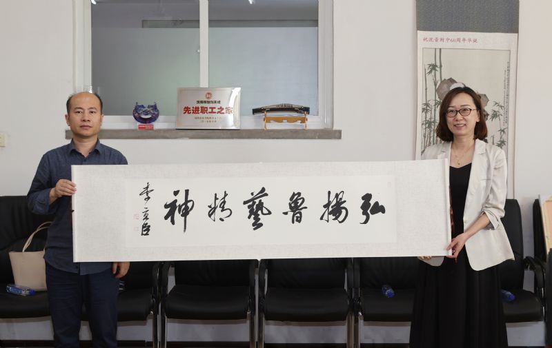座谈会后,省文联调研组向我院附中赠送了书法、烙画等艺术品。