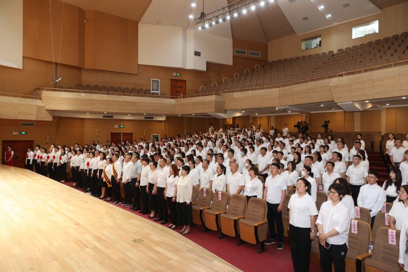 大会在全场齐唱《中华人民共和国国歌》激昂嘹亮的歌声中拉开帷幕。在赵恒心带领下,与会全体共产党员高举右拳,重温入党誓词。赵恒心代表学院党委为老党员代表张喜全、蒋泓颁发“光荣在党50年”纪念章。闫玉娇、张庆玫、赵桂君分别宣读《2021年以来荣获市级以上党建、思政、统战、纪检、学生及共青团工作奖项的个人和集体名单》《关于表彰2021-2022年度优秀共产党员、优秀党务工作者和先进基层党组织的决定》《关于表彰2021-2022年度优秀统战成员和先进集体的决定》。赵恒心、闫玉娇为荣获2021—2022年度学院优秀共产党员、优秀党务工作者和先进基层党组织代表,市级以上党建、思政、纪检工作先进个人和先进集体,学院党建创新项目、优秀专职组织员和专职党务工作人员颁奖。庞渤为荣获2021—2022年度学院优秀统战成员和先进集体,市级以上统战、学生和共青团工作先进个人和先进集体颁奖。表彰环节由张庆玫主持。