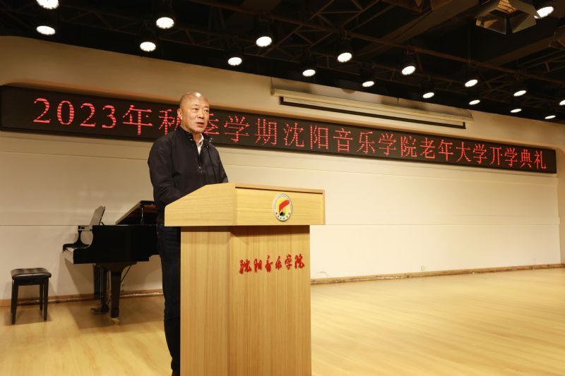 典礼上,赵恒心代表学院党委和全体师生员工向老年大学首届学员的到来表示热烈欢迎,向学员们追求高品质人生的精神致敬。赵恒心指出,作为一所政治性和艺术性深度融合的高等艺术院校,85年来,沈音为中国革命、建设和改革开放事业作出了不可磨灭的贡献。要将建设创新型老年大学纳入学院高质量发展三年行动之中,努力打造集教育教学、人文关怀与社会服务于一体的创新型老年大学。赵恒心强调,老年大学要从以下四个方面打造品牌:一是以高等教育筑底,致力老有所属。要坚持以人民为中心的办学理念,把党的二十大关于老龄工作的要求落到实处,将积极健康老龄化观念融入老年教育全过程,让广大老年朋友身有所处、心有所属。二是以专业教学强基,致力老有所学。要以“夕阳红火赛朝霞,老有所为促振兴”为宗旨,扩大课程资源,加强艺术实践,让广大中老年朋友在学习专业知识中,获得精神愉悦和心灵丰盈。三是以创新教学赋能,致力老有所为。要探索创新老年教育形式,将老年大学打造成“圆梦工厂”,培养更多中老年群体的艺术骨干和活跃在基层的文艺轻骑兵,让老年大学真正成为中老年朋友最正确的选择。四是以共享成果悦人,致力老有所乐。要推动老年教育开放共享,组织优秀学员积极展示教育教学成果,将老年大学打造成为中老年朋友健享生活的乐园、求知上进的学堂、圆梦人生的赛道、持续发热的平台。