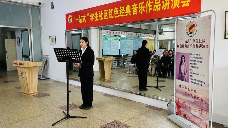 11月1日,第十四期“一站式”学生社区红色经典音乐作品讲演会在三好校区“一站式”学生服务中心举行。团委、学生处负责人和50余名学生代表参加讲演会。讲演会由声乐歌剧系辅导员陶薇伊主持。