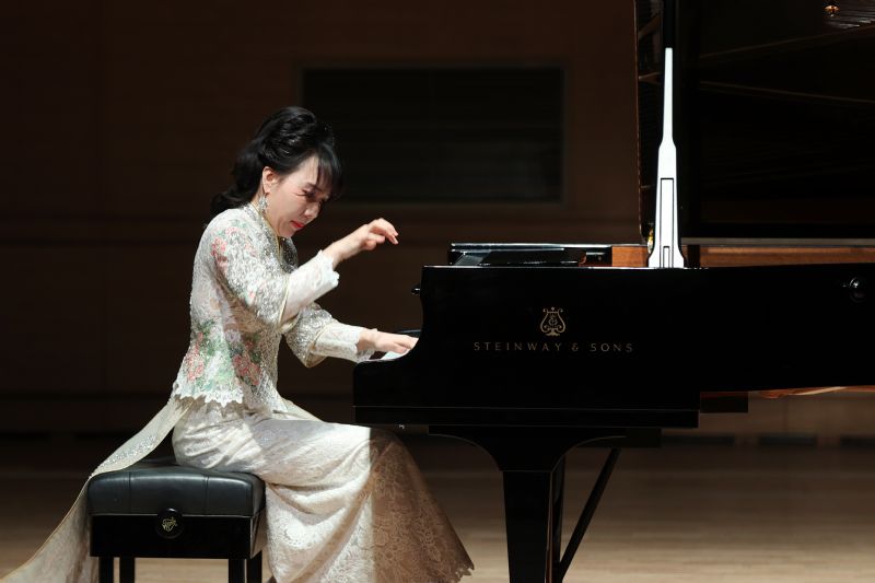 展演在舞蹈系学生带来的群舞《天路》中拉开帷幕。藏族男子群舞《天路》展现了藏族汉子粗犷洒脱、欢歌踏舞的场景,再现了藏族人民宽广浑厚的精神气质和无私奉献的爱国情怀。汉唐女子群舞《绿肥红瘦》以中国古典舞语汇为载体,对李清照的《如梦令》进行文化意象呈现,色彩明丽、婉约含蓄,展现了舞蹈古朴、优雅、内敛的风格特点。由四位青年教师带来的民族器乐重奏《逆水行船》,以筝、琵琶、笙、打击乐重奏的形式,颂扬了船工在江河中逆流而上、坚韧不拔的奋斗精神。木管五重奏《哦,美丽的姑娘》曲调轻快活泼,兼具舒缓优雅之风。室内乐作品《降E大调七重奏Op.20》第六乐章,充分展示了七种乐器的风格特点,音响效果丰润优美,洋溢着青春的气息。歌剧《魔笛》片段“我感到”“为了宣告黎明的到来”充分展示了乐句色彩和强弱的变化,营造出强烈的戏剧性效果。钢琴独奏《中国之梦》深刻表现了中国传统禅意思想,主题从怀古到颂古,将东方的文明和梦想传达给全世界,深情歌颂了中华民族伟大复兴中国梦。重唱《我的祖国》以抒情和激情相结合的笔调,赞颂了美丽家乡的景色,表达了中国人民志愿军热爱祖国的深情和革命乐观主义精神。大合唱《在灿烂阳光下》气势磅礴,表达出伟大的中国共产党带领中华儿女走向民族复兴的坚定信念,把现场观众带回那段追寻光明、披荆斩棘的光荣岁月。音乐教育系、声乐系130余名师生共同唱响《我和我的祖国》,气势昂扬、激情澎湃,把对祖国、对新时代的热爱之情融入振奋人心的旋律中,深情表达了人们对伟大祖国的衷心依恋和真诚歌颂。当《我们走在大路上》的旋律响起,全场观众同声共唱、尽情高歌,在激昂的歌声和热烈的掌声中,展演活动圆满落下帷幕。