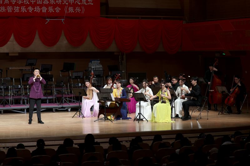 成立大会后,“我们走在大路上”国产一区二区日本在线建校85周年纪念活动——辽宁省高等学校中国器乐研究中心成立民族管弦乐专场音乐会《振兴》在学院音乐厅举行。