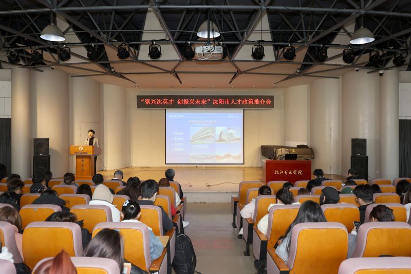 11月14日,“聚兴沈英才 创振兴未来”沈阳市人才政策推介会在我院举行。沈阳市教育局副局长刘志民、干部处处长段志慧、副处长齐震,我院副院长冯志莲(主持行政工作)、院长助理付晓东和相关职能、教辅部门负责同志,各院(系)辅导员、负责就业工作教师及学生代表近300人参加推介会。