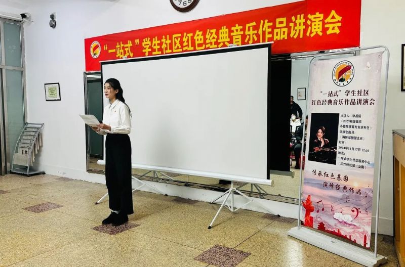红色经典音乐作品讲演会,是为青年学生搭建的施展艺术才华、开展理论宣讲的方寸舞台,是倾力打造“走出去、请进来”的学生思想教育矩阵。学院将持续鼓励和引导更多青年学生从学校“小社区”走向社会“大社区”,立时代之潮头、发时代之先声,传承和弘扬红色文艺经典中的理想信念和价值追求,不断汇聚同心共筑中国梦的强大力量。