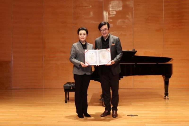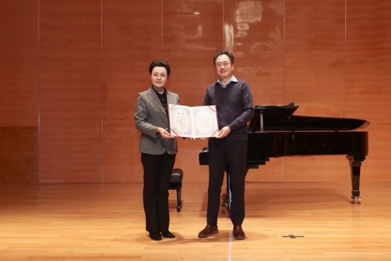 大师课后,冯志莲分别为李伟纲、李宏刚颁发我院客座教授聘书。