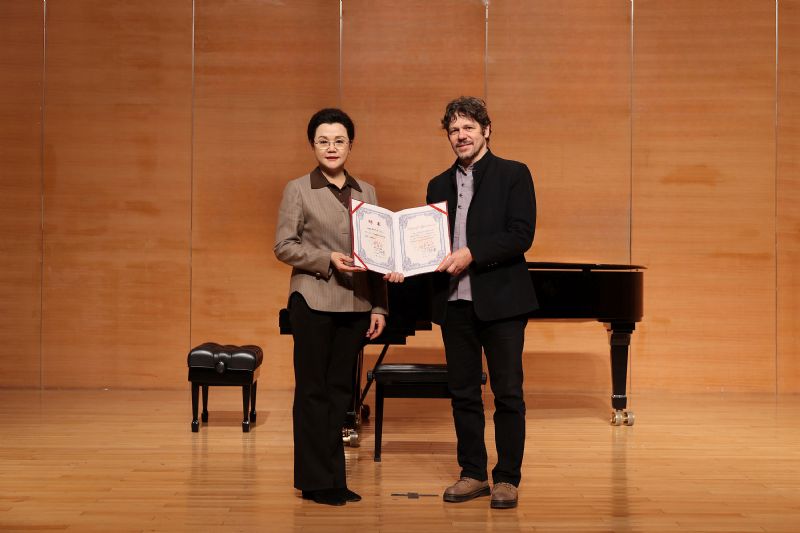 12月12日、13日,天津茱莉亚学院长笛教授,匈牙利著名长笛演奏家、作曲家盖尔盖伊·伊采什(Gergely Ittzés)及其夫人朵拉·阿比格尔·萨博(Dóra Abigél Szabó)来我院讲学并举办音乐会。我院副院长冯志莲(主持行政工作)出席相关活动,并为盖尔盖伊·伊采什颁发客座教授聘书。