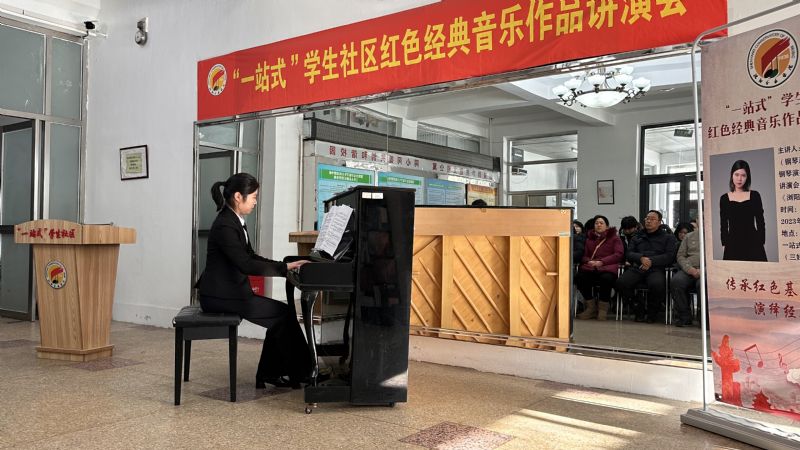 12月20日,第二十期“一站式”学生社区红色经典音乐作品讲演会在三好校区“一站式”学生服务中心举行。学生处、钢琴系相关负责同志与师生代表50余人参加讲演会。讲演会由钢琴系辅导员邓一帆主持。