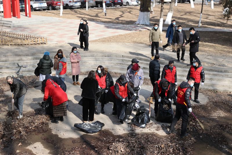 当天上午,机关党委、后勤基建处党总支的党员、干部、群众按照活动安排,分组划片、集体联动,对三好、长青和桃仙校区的水池假山、凉亭树林、学生公寓、水源地、商园等周边绿地内的枯枝、落叶等垃圾进行集中清扫。活动中,大家不怕脏、不怕累,全身心投入到清扫工作中,有的挥舞扫把清扫,有的拿起铁锨装袋,有的忙着清运垃圾……一片热火朝天的繁忙景象。