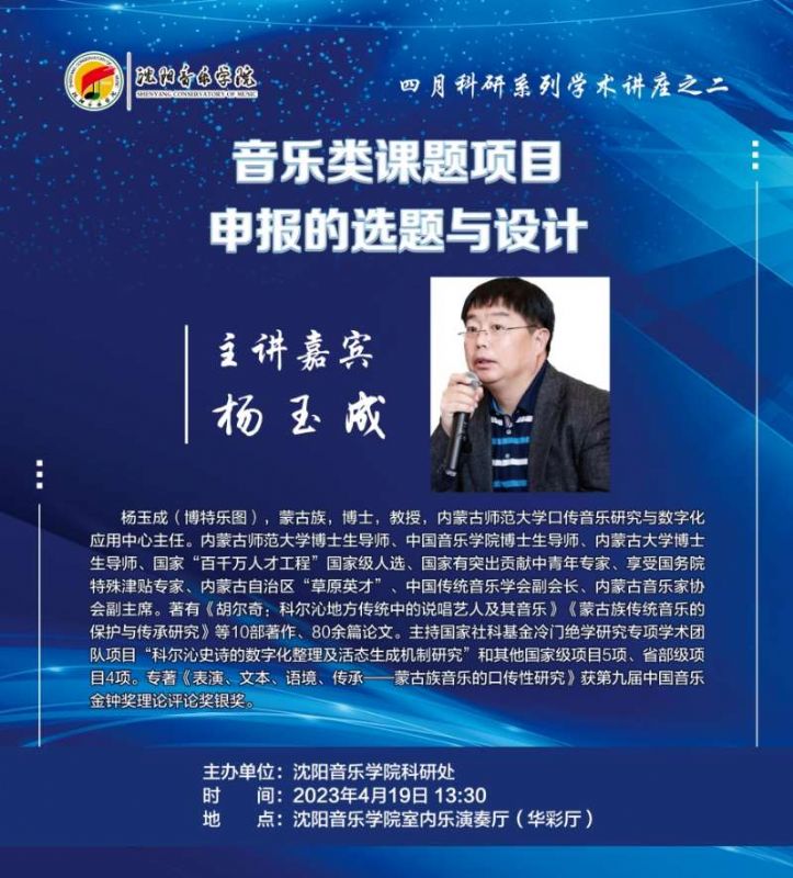 讲座题目:《音乐类课题项目申报的选题与设计》