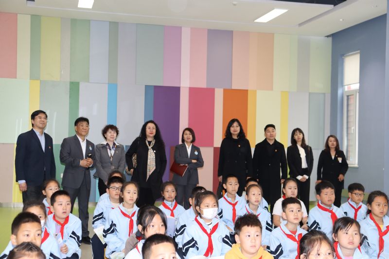 在南京一校沈抚示范区分校,闫玉娇一行实地参观了电钢琴教室 、党员活动室、星星剧场、飞天民乐坊、青绿画坊、美术馆、音乐教室、舞蹈教室,并与学校领导及相关部门负责人座谈交流。