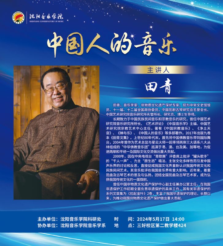 嘉宾简介:田青,音乐学家,非物质文化遗产保护专家。现为中央文史馆馆员、十一届、十二届全国政协委员,中国昆剧古琴研究会名誉会长、中国艺术研究院音乐研究所名誉所长、研究员、博士生导师。