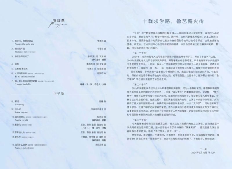 音乐会名称:十载求学路 鲁艺薪火传——王一凤独唱音乐会