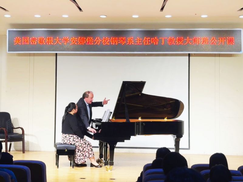 6月4日,美国密歇根大学安娜堡分校钢琴系主任克里斯托弗·哈丁教授大师课在我院举办。钢琴系领导班子成员、全体师生及其他院系师生参加活动。钢琴系主任李哲主持大师课,青年教师程妍担任翻译。