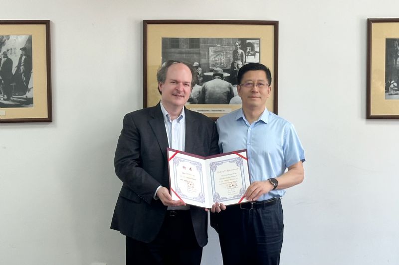 党委书记赵恒心为克里斯托弗·哈丁教授颁发客座教授聘书