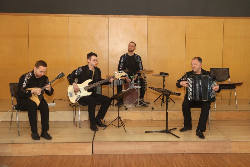 展演中,民族器乐系师生首先带来扬琴独奏《将军令》、古筝独奏《茉莉芬芳》、笙与扬琴《天鹅畅想曲》、琵琶独奏《送我一只玫瑰花》、二胡与钢琴《红梅随想曲》以及打击乐独奏《楚汉决战》等多首中国民族器乐经典曲目,向俄方艺术家展示笙、扬琴、二胡、琵琶、古筝等中国民族乐器丰富多彩的艺术表现力。“贝加尔湖四重奏”团队的艺术家们先后演奏巴扬、巴拉莱卡等俄罗斯民族乐器,为现场师生带来《土耳其进行曲》《小苹果》《探戈》《天空中的蓝色气球》等乐曲。最后,民族器乐系师生与“贝加尔湖四重奏”团队还联袂表演了《茉莉花》《莫斯科郊外的晚上》等中俄两国人民耳熟能详的经典歌曲,将现场气氛推向高潮,掌声、喝彩声经久不息。