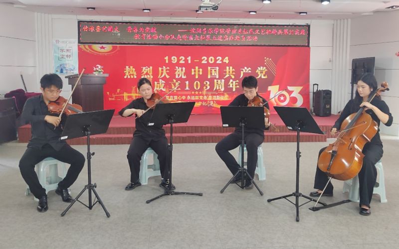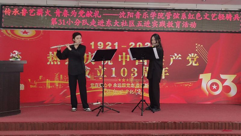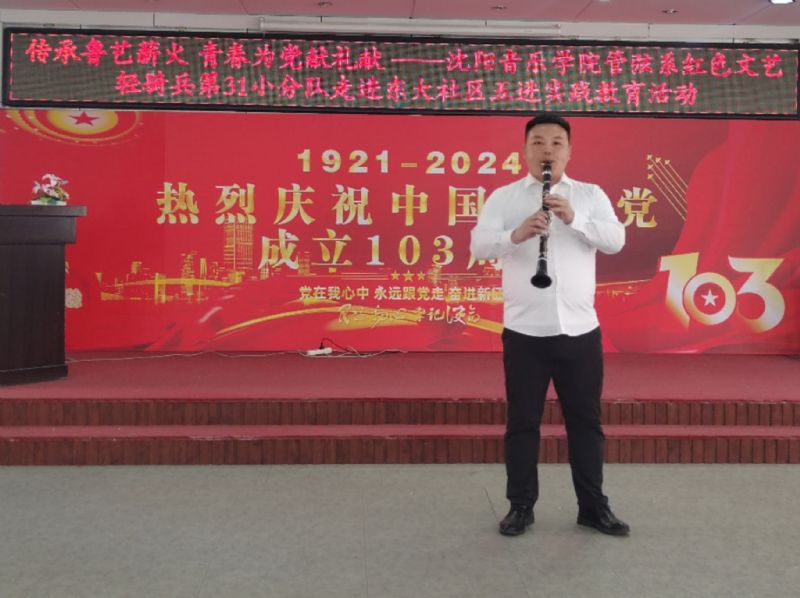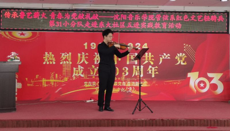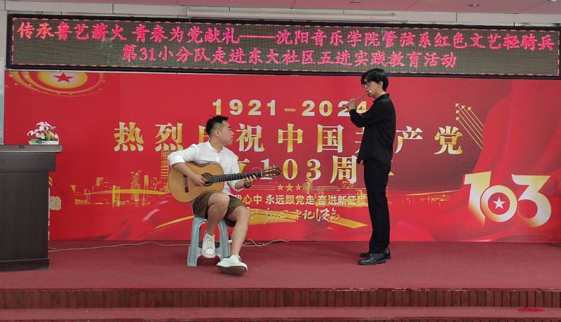7月1日,“红色文艺轻骑兵”管弦系小分队与管弦系师生党员,走进和平区东大社区,开展“传承鲁艺薪火,青春为党献礼”五进实践教育党日活动,重温党的光辉历史,讴歌党的丰功伟绩,庆祝党的103周年华诞。