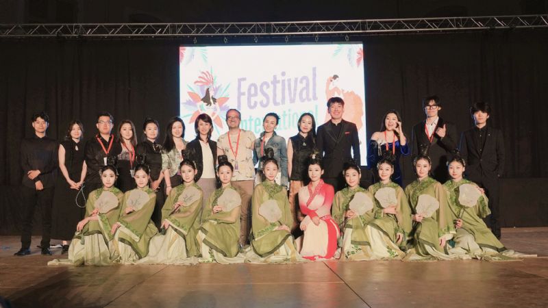 闭幕式演出中,我院代表团作为第二组演出团体在东道主法国代表团后演出。舞蹈《清风徐来》《孔雀东南飞》以精湛的技艺为现场观众营造了如诗如画的意境。民乐合奏《在那遥远的地方》《敦煌》悠扬的旋律则仿佛将现场观众带到了古老的东方。“百灵鸟从蓝天飞过,我爱你,中国……”当声乐合唱《我爱你中国》在遥远的法国罗芒唱响的那一刻,代表团每一位成员都为祖国感到无比的骄傲和自豪。现场观众也被深深打动,不时爆发出雷鸣般的掌声。