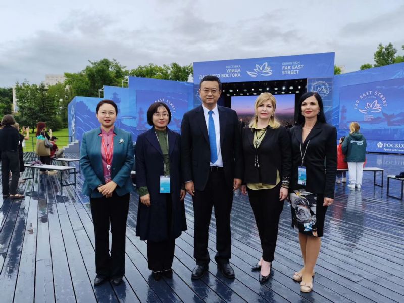 副院长王硕与辽宁省副省长高涛、省商务厅厅长潘爽、俄罗斯滨海边疆区政府副主席叶莲娜·尼古拉耶夫娜·博罗尼科娃、滨海边疆区爱乐乐团团长维多利娅·芙拉基米罗夫娜·科切特科娃交流