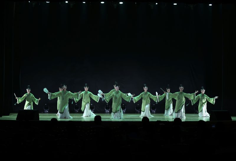舞蹈学院学生在第八届丝绸之路国际博览会辽宁主宾省开馆仪式上演出群舞《清风徐来》