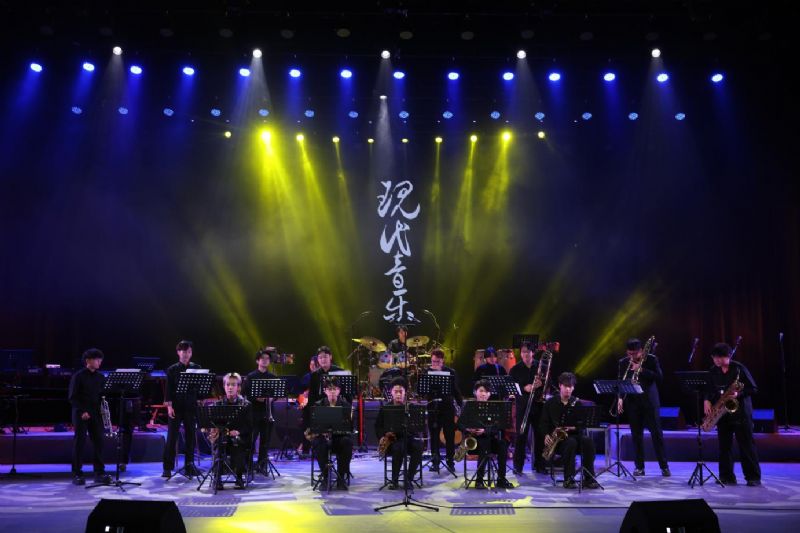 音乐会以一首爵士大乐队的乐曲拉开序幕,现场气氛被瞬间点燃。作品融合摇滚、爵士和灵魂乐的元素,展现了“放克的休闲”风格,音乐热情奔放、充满动感。电子管风琴作品《楚天遥》由我院学生独立创作、编曲并演奏,作品集传统戏曲与现代电子管风琴艺术于一体,既保留了古典戏曲的深厚底蕴,又注入了电子管风琴的鲜明特色,充分展现了其独特的艺术魅力。流行声乐作品《父亲写的散文诗》表达了对父爱的赞美和敬意。曲目当中吉他与钢琴交织的简洁编曲,将两种不同乐器的“素”与“雅”完美地融合呈现。音乐会共演出了二十三首音乐作品,每一首曲目都彰显了现代音乐学院学生对艺术的深刻理解和创新实践。在音乐会的最后,全体演员集体演唱,用充满青春力量的歌声表达了对音乐的热爱、对未来的憧憬。观众们也被这份热情所深深感染,台上台下共同歌唱,共同感受青春的热烈与激情。