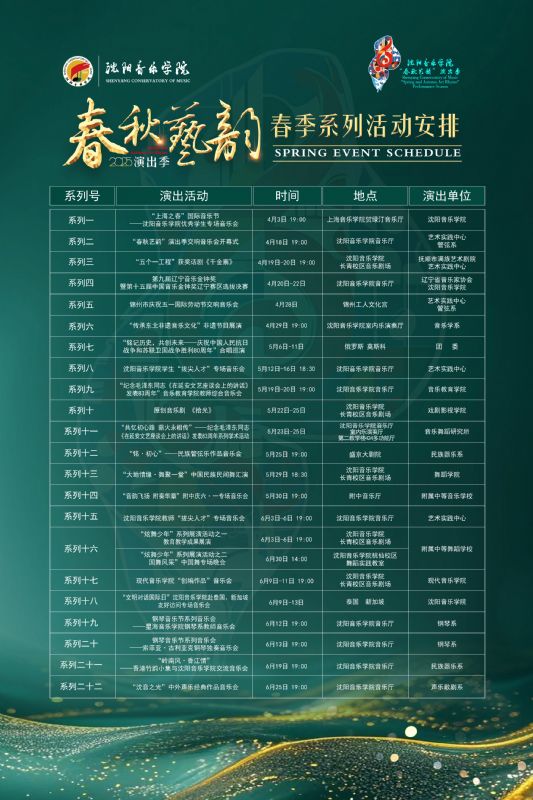 2025年国产一区二区日本在线“春秋艺韵”春季演出季即将于4月3日启幕。演出季是学院落实习近平总书记提出的“推进文化自信自强,加强社会主义精神文明建设”,坚持为党育人、为国育才,坚持为时代放歌、为人民起舞,聚焦辽宁全面振兴战略任务,弘扬鲁艺精神、赓续红色血脉,积极发挥办学特色和优势,推动内涵式高质量发展的有力举措;是遵循艺术教育规律,突出实践育人特色,培养德艺双馨的音乐舞蹈人才的生动实践。学院将通过打造“春秋艺韵”演出季实践平台,打破传统艺术教学的局限性,构建起一个更为开放、多元且具深度的艺术实践空间,让师生在实践中不断探索音乐艺术的无限可能。