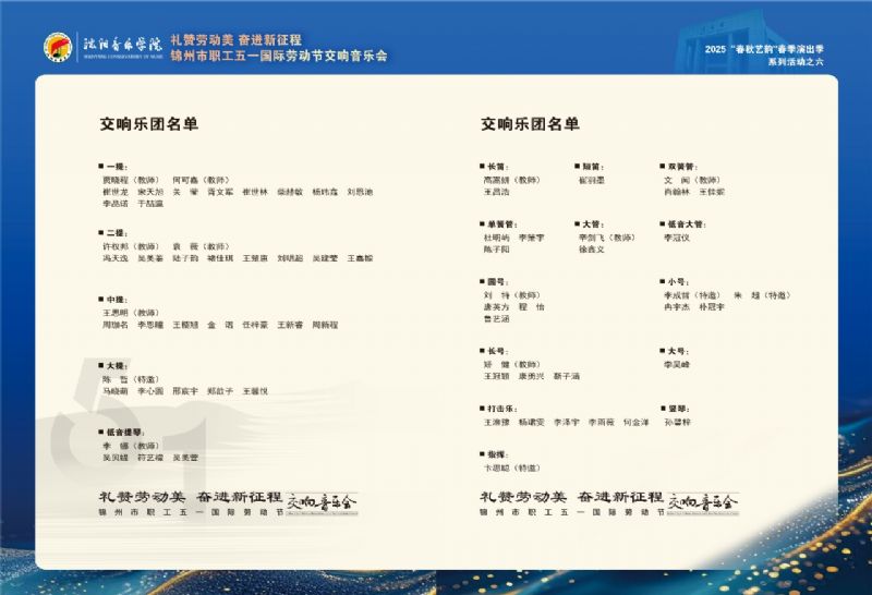 “春秋艺韵”2025演出季春季系列活动之六——“礼赞劳动美 奋进新征程”锦州市职工五一国际劳动节交响音乐会