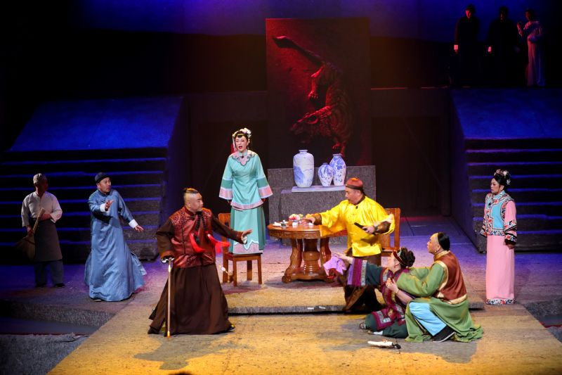 该剧打破了传统线性叙事模式,采用回忆与现实交织的双线结构,以老年翁玉带着后辈参观旧址为引,实现了现代与过去的对望。在话剧表演的基础上,融入了京剧唱段、习武打拳、地域方言等元素,给观众带来新鲜的观演体验。这种跨界的表演方式使表演更加趣味生动——京剧唱段强化了民族文化的在场感;武术表演体现了抗争精神的刚健特质;东北方言的使用则增强了地域真实性和生活气息,时而引得在场观众哄堂大笑。演员们在表演上实现了或悲壮或激昂亦或诙谐的多样统一,使每个角色的人物性格得到充分释放,这种表演上的丰富性,使《千金寨》既有震撼人心的力量,又不乏细腻动人的细节。