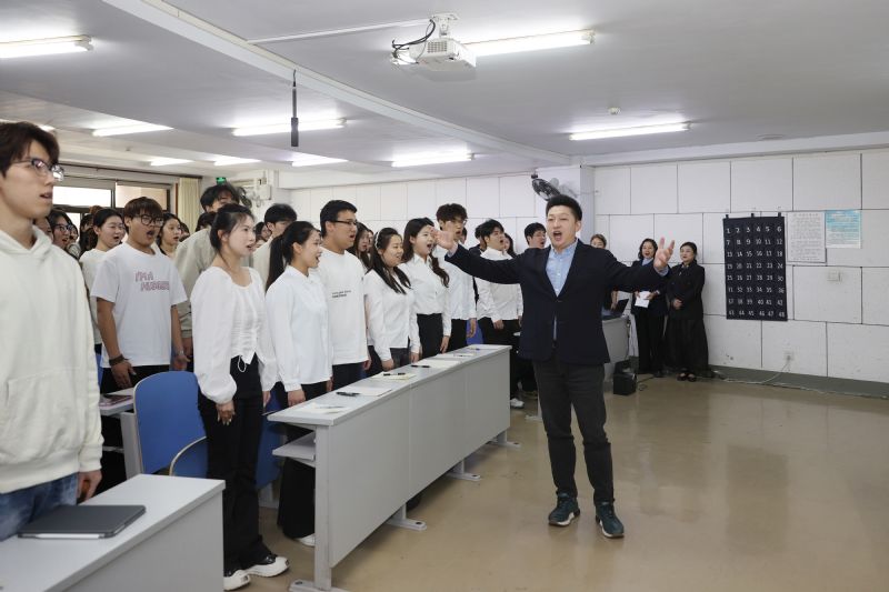 在课程尾声,田彦与同学们共同歌唱《我和我的祖国》,激昂的旋律中饱含着师生对祖国的深情挚爱与美好祝愿,同时也彰显出师生们对鲁艺先辈及其精神传承的崇高敬意。田彦对师生们提出殷切期望。一是要把握青春年华,勤学苦练,知行合一,全面提升专业水平和综合素质;二是要积极投身到繁荣社会主义文艺的伟大事业之中,坚定文化自信,把握时代脉搏,用歌声传递正能量,用艺术服务人民群众,用文艺凝聚起新时代奋勇前进的磅礴力量。