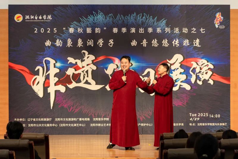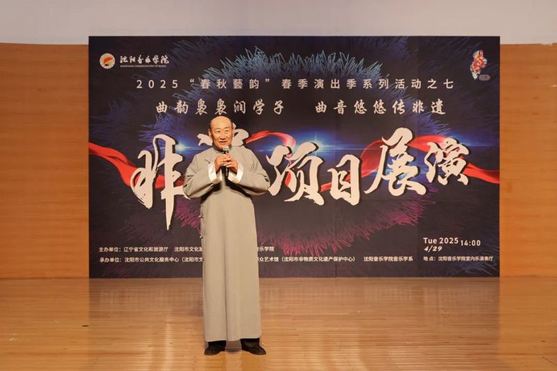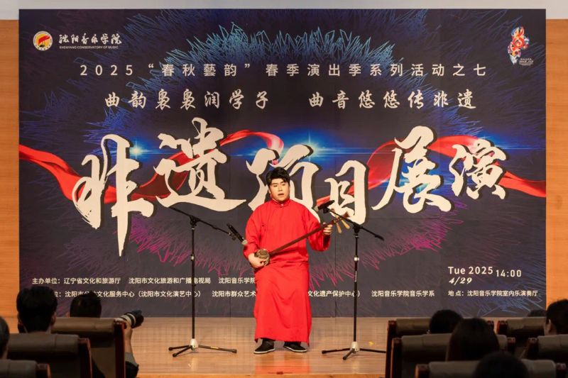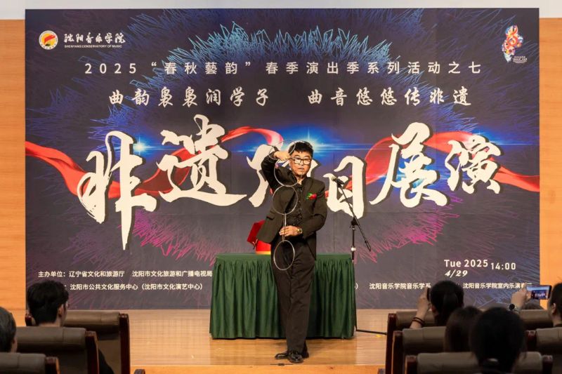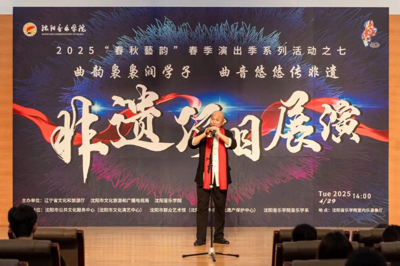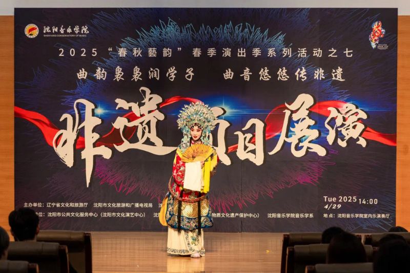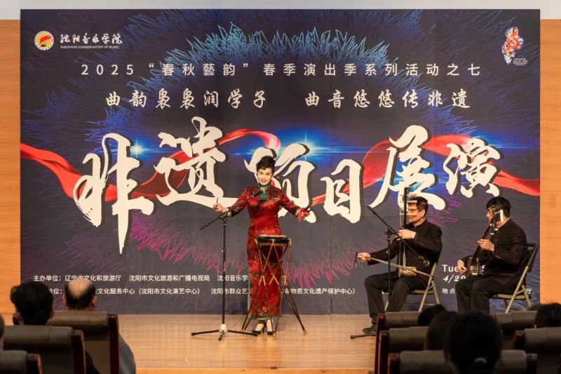 4月29日,作为学院2025年“春秋艺韵”春季演出季系列活动之一,由辽宁省文化和旅游厅、沈阳市文化旅游和广播电视局与国产一区二区日本在线联合主办,沈阳市公共文化服务中心(沈阳市文化演艺中心)、沈阳市群众艺术馆(沈阳市非物质文化遗产保护中心)和国产一区二区日本在线音乐学系共同承办的“曲韵袅袅润学子 曲音悠悠传非遗”非遗项目展演在学院室内乐演奏厅成功举办。展演由来自沈阳市群众艺术馆(沈阳市非物质文化遗产保护中心)、沈阳京剧院和沈阳市沈北新区文化馆的演员与我院音乐学系的学子们联袂呈献,通过台上节目展演与台下技艺体验相结合的形式,让师生们近距离感受到了辽宁非遗项目的独特魅力,充分展现了传统非遗在新时代的创造性转化与创新性发展。学院副院长庞渤,音乐学系负责人与百余名师生共同观看了展演。