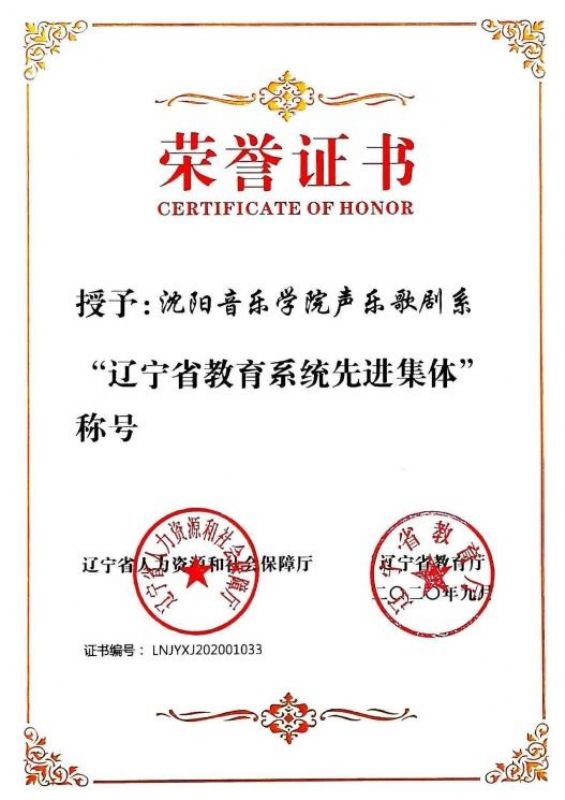 声乐歌剧系荣获“辽宁教育系统先进集体” 称号