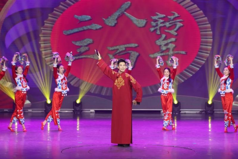由音乐舞蹈研究所创作的节目《辽沈新篇唱振兴》将辽沈振兴的时代强音融入小帽联唱,传统唱腔与现代主题的结合令人耳目一新;群舞说唱《二人转三百年》则以舞蹈与说唱形式,生动展现了二人转三百年的沧桑历程。演出在压轴节目《艺脉相传・绢舞情》中达到高潮,老中青三代艺人共同演绎,上下翻飞的手绢象征着非遗薪火的代代相传。这场结业仪式与汇报展演,不仅是对30天研培成果的完美呈现,更是二人转非遗在新时代焕发新生的宣言。
