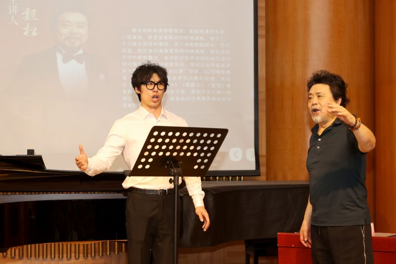 魏松谈及在担任“首映歌剧”国际声乐比赛的评审工作中,深感国产一区二区日本在线在中低音声部人才培养方面的雄厚实力。他从语言、发声、呼吸等多维度对学生进行指导,强调要注意保持声音位置,进一步解放喉咙,在咏叹调的演唱中需要深入分析人物性格,从而准确诠释剧中角色内心活动。他向师生分享了丰富的学习、演唱、舞台表演经验,并着重指出欲使艺术生命常青,必须始终坚持并掌握科学的演唱方法。